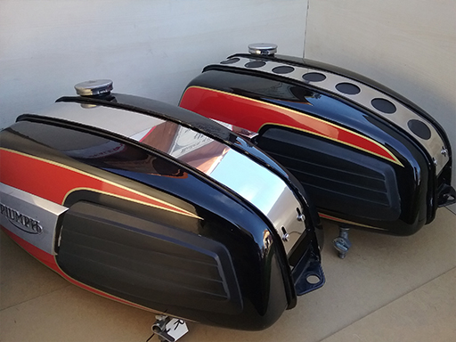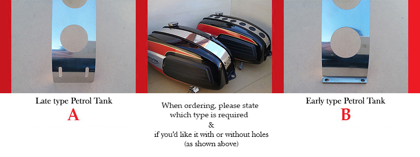 There are now 3 types of tank straps to choose from to fit the Bread bin petrol tank of the Triumph Trident T150/T150V.