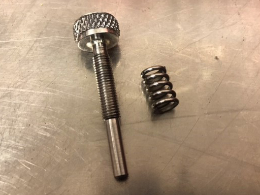 A stainless steel polished knurled tickover adjustment screw and stainless steel spring to suit all Triumph Trident T150s and BSA Rocket 3s